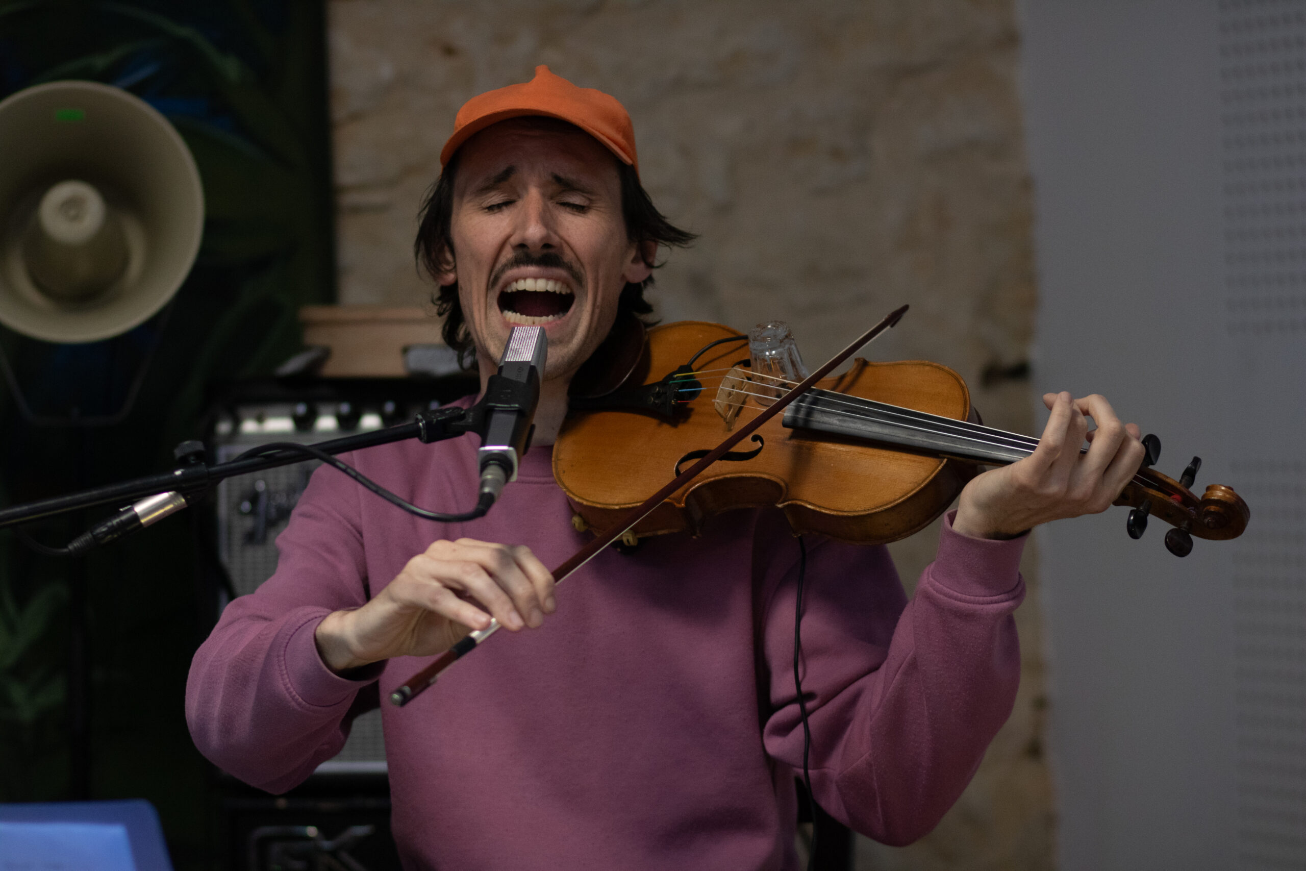 An artist based in Thiers (63), Ernest Bergez, aka Sourdure, has been exploring the boundaries of distant sound worlds for the past ten years, combining a spirit of experimentation with a personal, hand-crafted approach to traditional musical objects. Hybrid and exploratory, Sourdure‘s music reveals itself in many facets: baroque inventions on traditional canvas, vociferous carnivalesque odes, stylistic borrowings from oriental music, sonic orfevrery marked by concrete music… Combined with the acoustic rusticity of the violin or the dotar (a Central Asian lute), electronics do their alchemical work, disturbing sound objects, altering perceptions and the course of time.