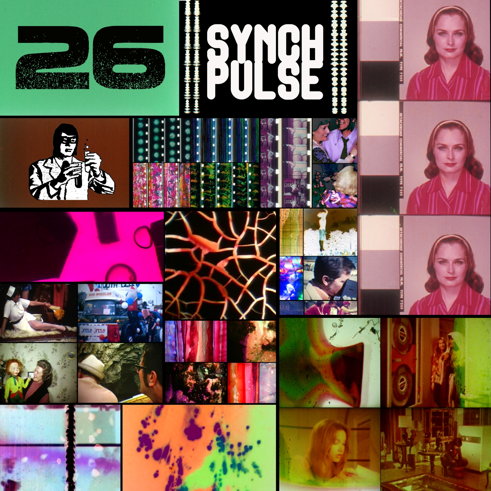 Synch Pulse is a monthly free entry experimental film night featuring a different theme for each programme, represented by archive and contemporary shorts, animations, documentaries, vintage adverts and trailers, and public information films, with a strong emphasis on electronic music and experimental soundtracks.