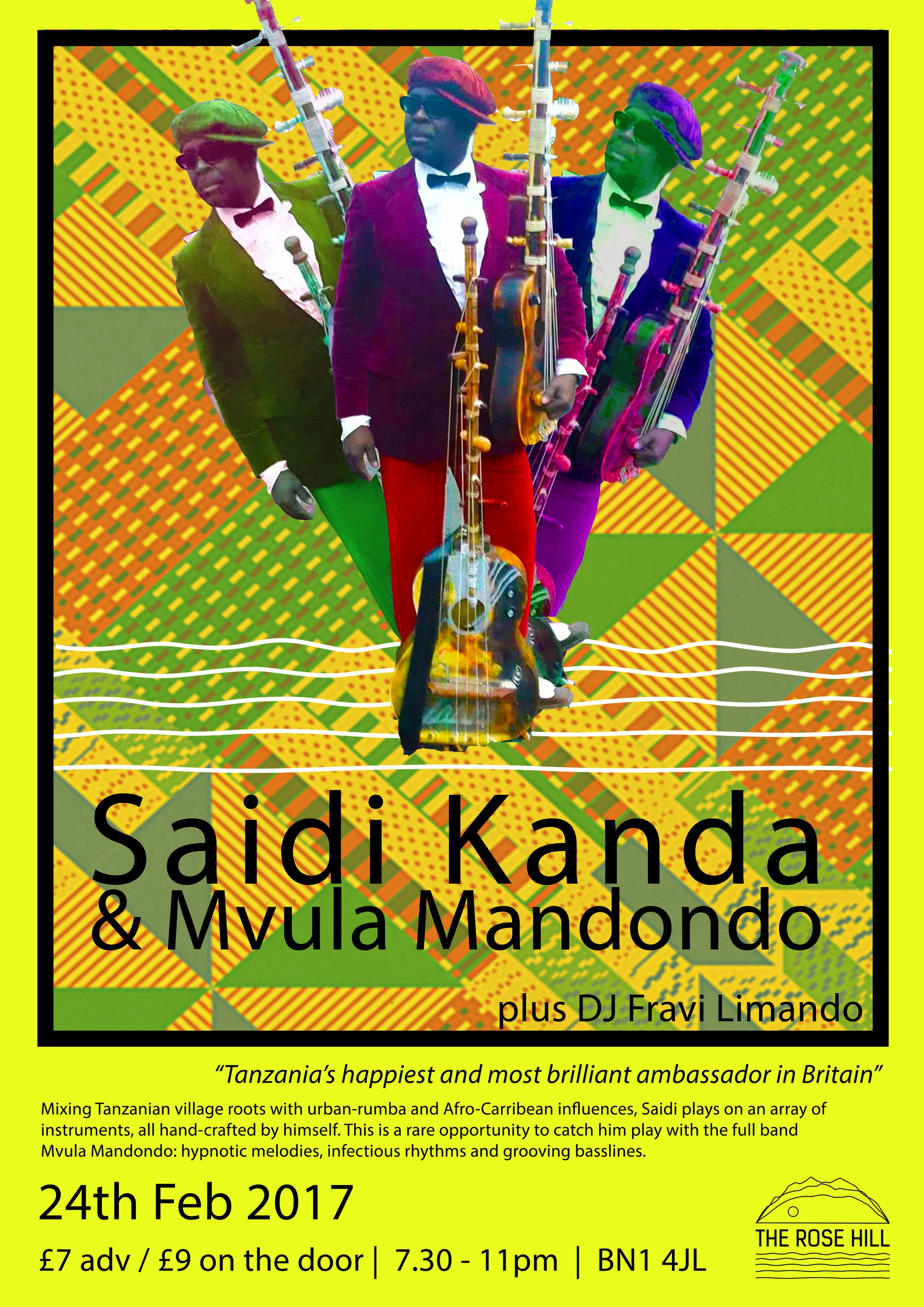 Founded by internationally respected percussionist, Saidi Kanda, has played his hareem of homemade instruments with Grace Jones and Remmy Ongala’s Orchestra Super Matimila to name a few. Mvula Mandondo presents an original concoction of Tanzanian village roots, urban rumba and Afro-Caribbean influences, blending traditional and modern instruments. Saidi Kanda’s vocal virtuosity accompanied by commanding guitar-driven rhythms will make you move. Alternatively, you may just want to sit back, relax and let strings, thumb piano and harmonies, beats and guitar rhythms wash over you like tropical rain.